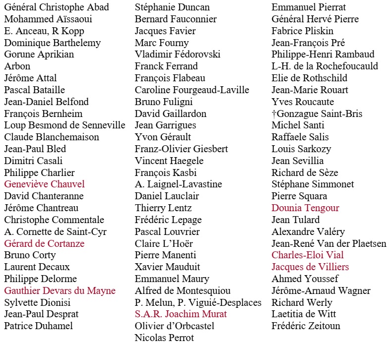 Membres du Jury du Prix du Guesclin, Prix des Empires Prince Joachim Murat, Trophée de la Biographie Gonzague Saint-Bris et Prix de la Mairie du 8e