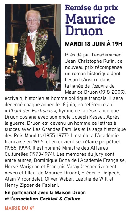15 octobre : 15e Salon des Femmes de Lettres au Cercle National des Armées de 18h30 à 21h. Remise du Prix Simone Veil, Prix des Femmes de Lettres, Prix Cocktail&Culture