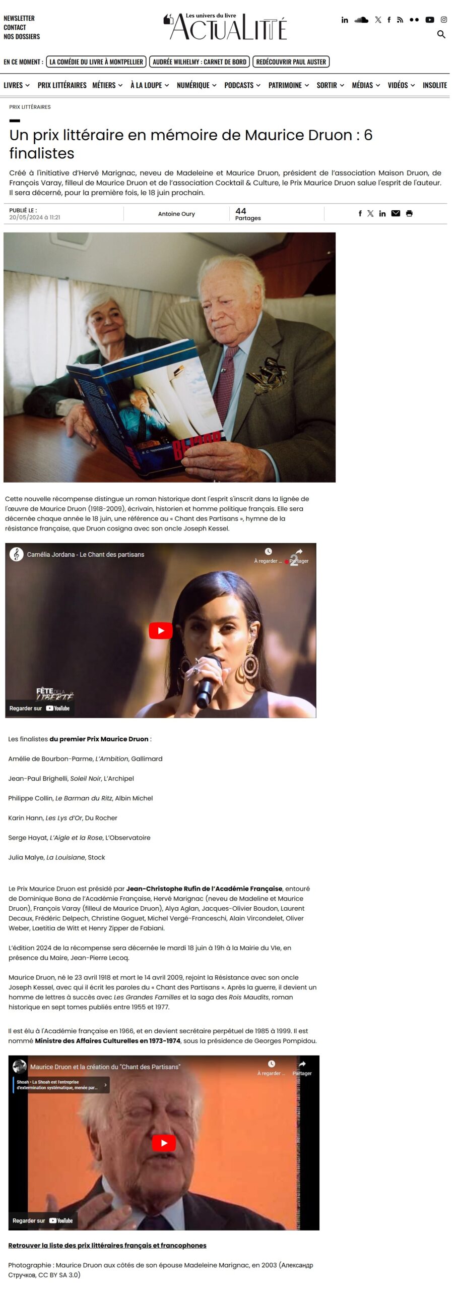 12 novembre : 89e Prix Interallié restaurant Lasserre, 17 avenue Franklin Roosevelt, Paris 8e