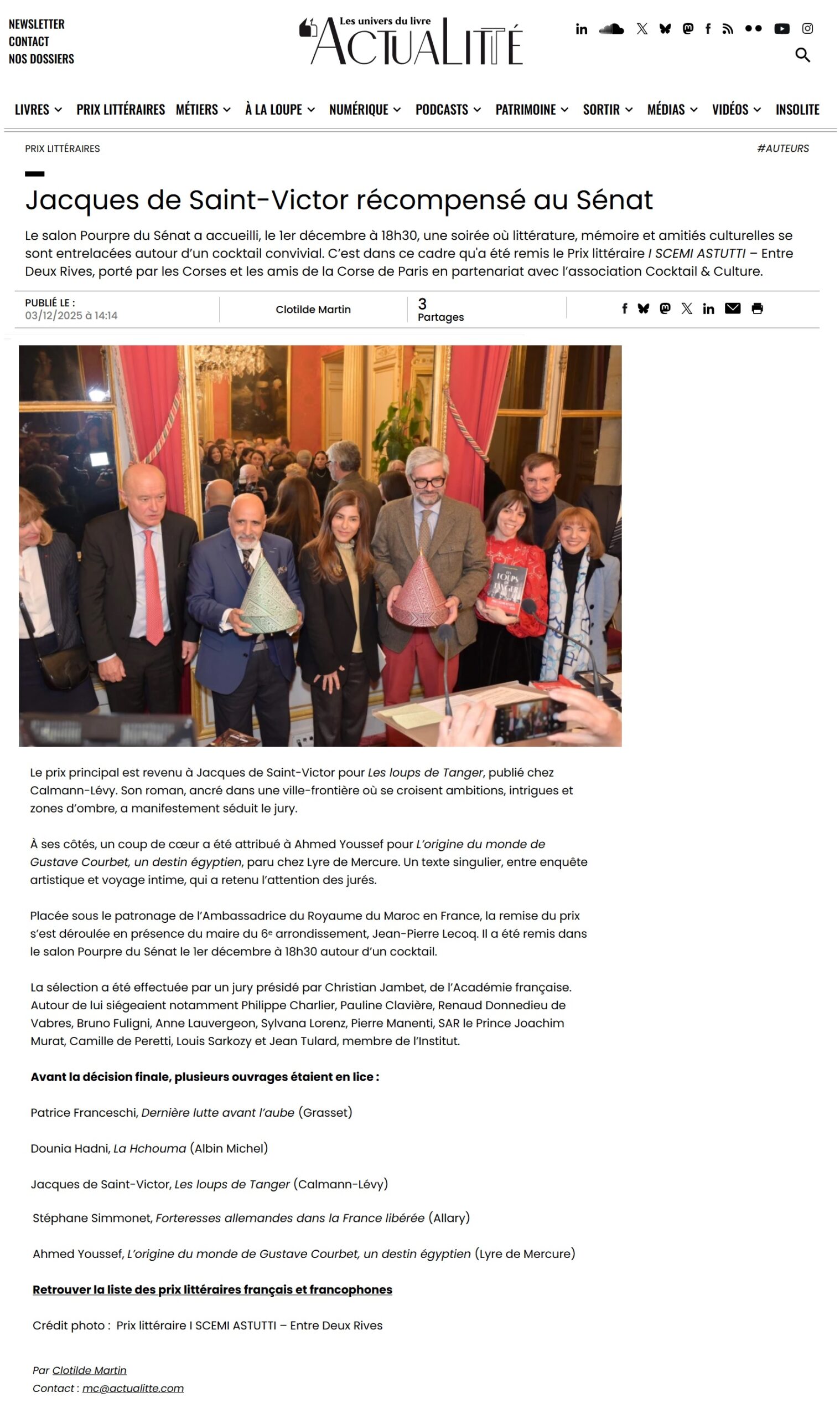 Mardi 13 janvier 2026 : Remise du Prix Marguerite Duras à la Mairie du 8e