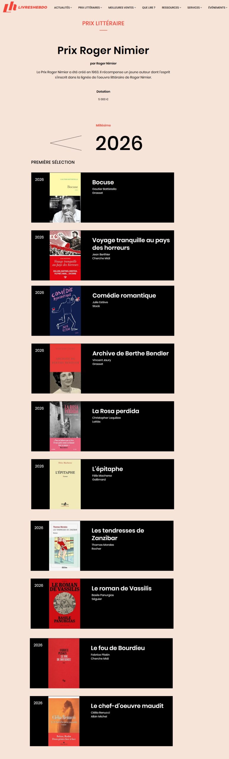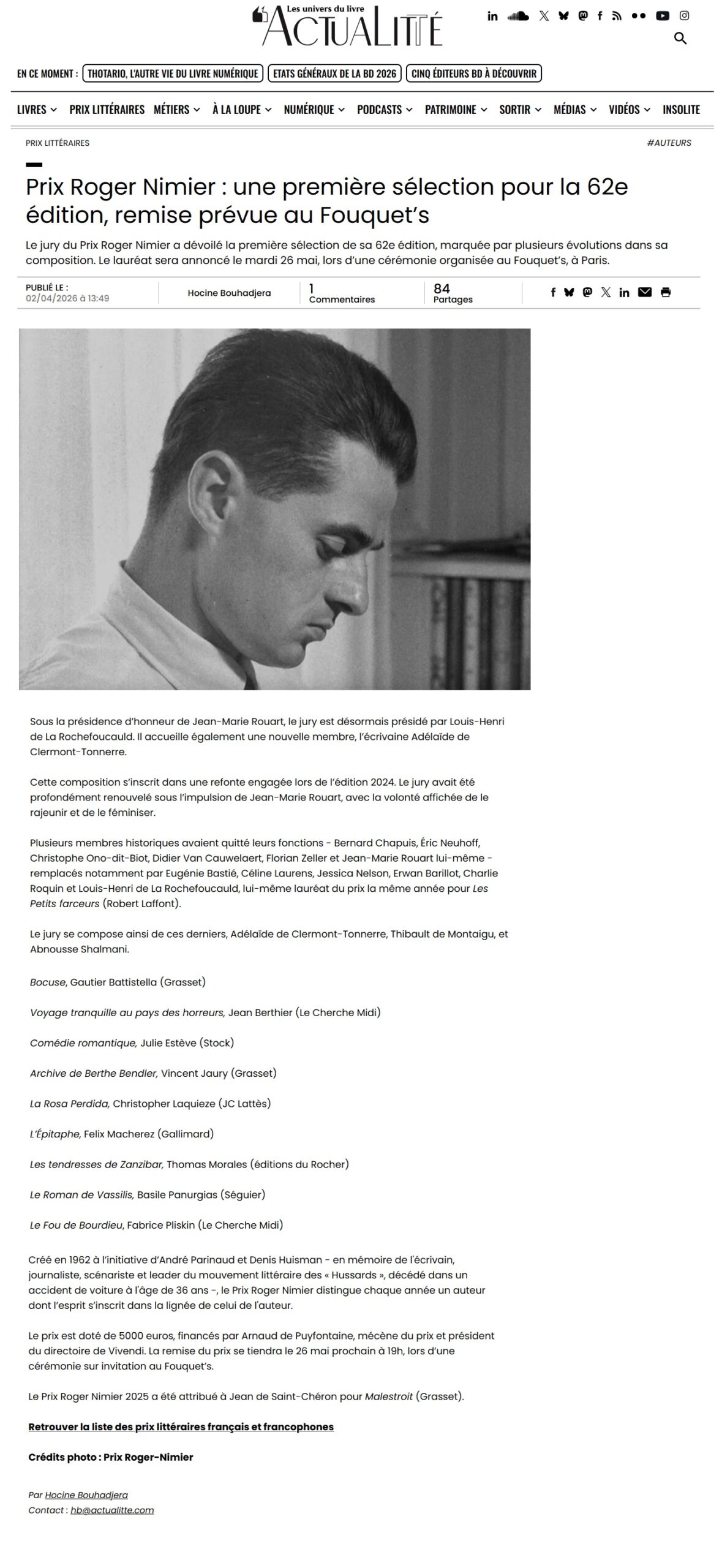 Mardi 26 mai 2026 : Remise du Prix Roger Nimier au Fouquet’s, 99 avenue des Champs-Elysées, Paris 8e