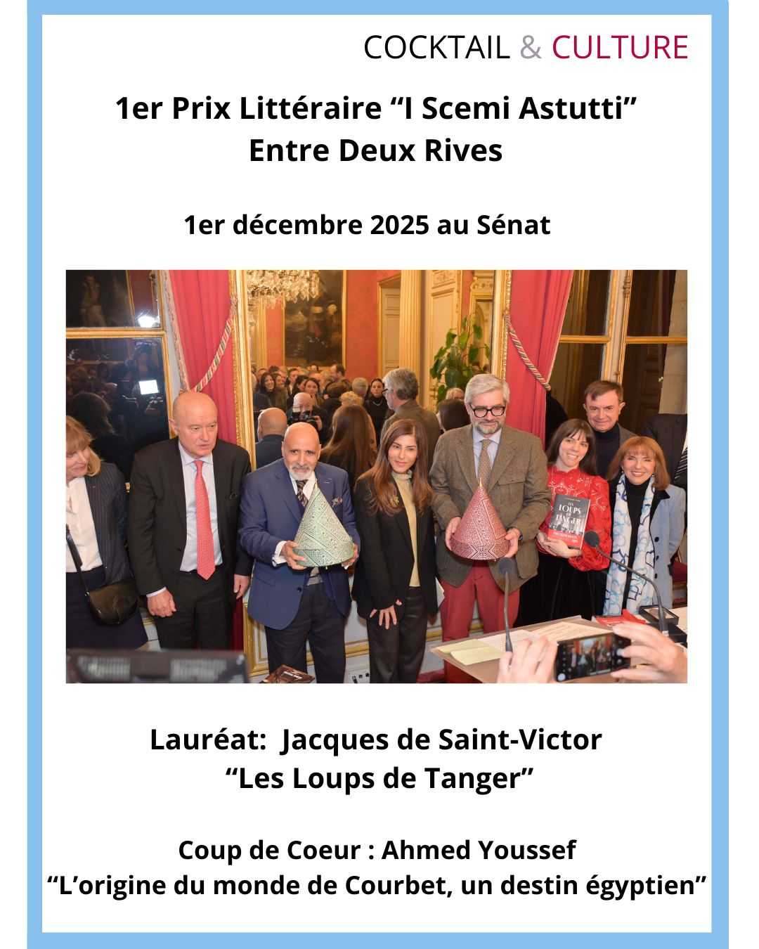 Remise du 1er Prix littéraire I Scemi Astutti – Entre Deux Rives 1er décembre 2025 au Sénat