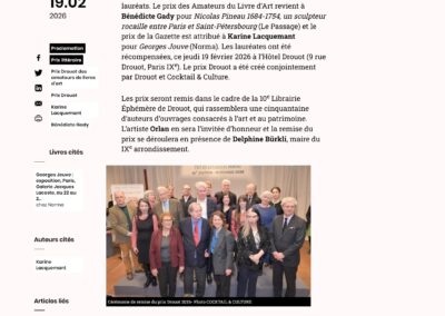 Retrouvez les articles parus sur le 10e Prix Drouot des Amateurs du Livre d’Art et la 10e Librairie Ephémère de Drouot jeudi 19 février 2026